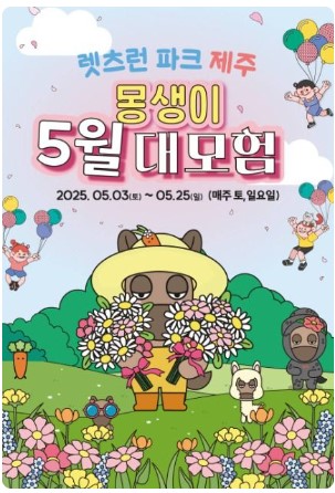 2025년 5월, 제주도 렛츠런파크에서는 특별한 경험이 여러분을 기다립니다. ‘몽생이 5월 대모험’이라는 이름으로 열리는 이 축제는, 아이와 함께하는 가족은 물론이고 색다른 체험을 원하는 모든 이들에게 완벽한 선택이 될 것입니다.