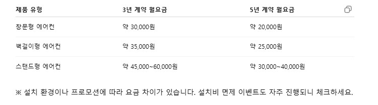 수십만 원~수백만 원대 에어컨을 초기 비용 없이 월 렌탈료만으로 사용 가능! - 전문 설치 & A/S 포함